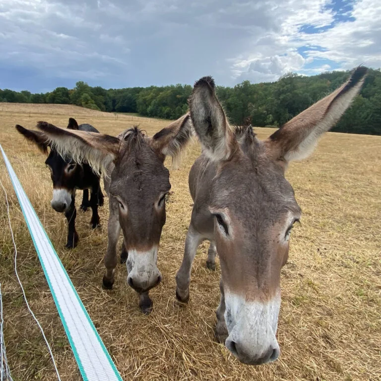 In August 2022 we were called out on many occasions to help catch 3 donkeys wandering the country lanes. It’s amazing they didn’t cause an accident or get hurt. They were shy, scared of people, and just ran off whenever we approached them. The mayors of two communes were involved in trying to safeguard the donkeys but the owner just wasn’t interested and refused to mend his fences.