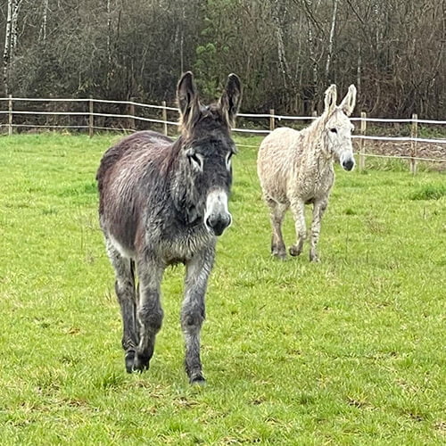 Then in Feb 24 we couldn’t believe our luck when a delightful family, two vets,(one retired, perfect!) approached us in search of a pair of donkeys. They already had horses and just needed a field shelter in one of their paddocks to complete their setup.
