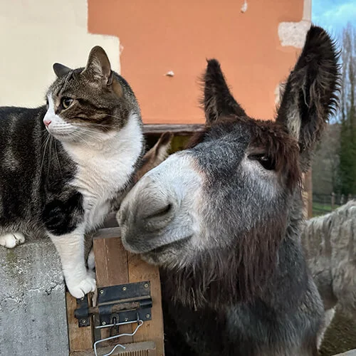 In August 2022 we were called out on many occasions to help catch 3 donkeys wandering the country lanes. It’s amazing they didn’t cause an accident or get hurt. They were shy, scared of people, and just ran off whenever we approached them. The mayors of two communes were involved in trying to safeguard the donkeys but the owner just wasn’t interested and refused to mend his fences.
