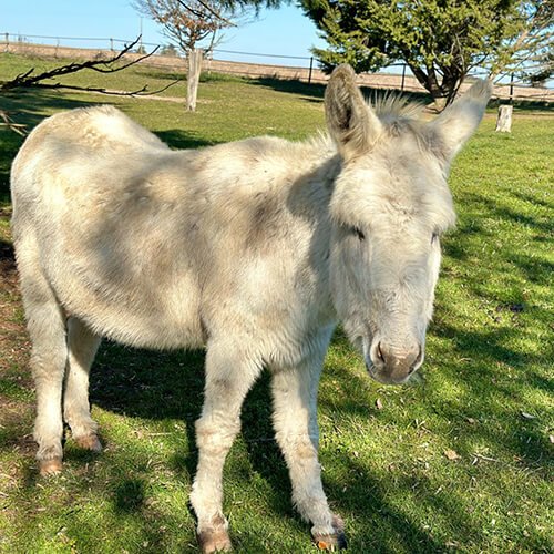 Teddy arrived at HeeHaws with Billy in the first week of January 2021. In contrast to Billy, Teddy was thin and had very overgrown feet. He had lice, worms, and an ulcerated mouth, so much so he could hardly eat. It took many visits from the vet and Gareth to get Teddy feeling better.