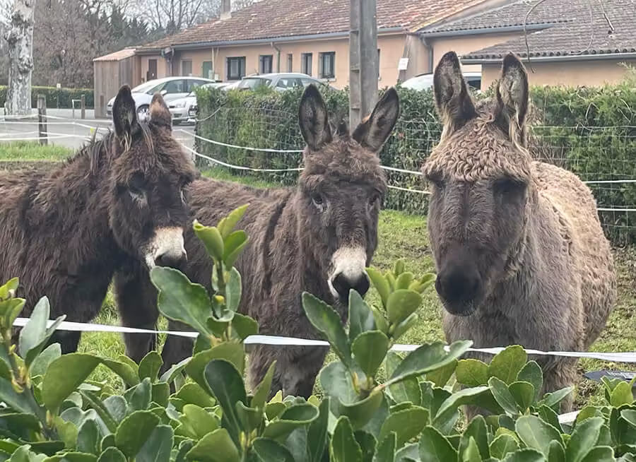 In October 2023 we found the most fabulous home for them. Well, actually, the perfect family found them! Laurent and Nathalie contacted us because they wanted a companion for their lovely newly acquired donkey Caramel. Once they came and met Fern and Woody, who (let’s face it) are irresistible, they fell in love ❤️. So we organised a home check. Caramel is a similar size and age to both Fern and Woody and cuddles just like Fern too! We transported them within the week and within 2 weeks of living side by side they were all put in together. We’ve since been back a few times and all 3 are calm and living happily together. We are so happy that these 2 very special babies, who were dumped in a forest, now have a very special home of their own.