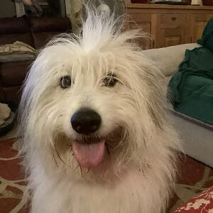 Emily – Pyrenean Mountain Dog X Border Collie. One of seven born on a farm where the owner was going to have them killed because he wanted pedigree puppies😡 All 7 were found fabulous homes❤️