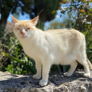 Jeffrey – owners relocated to the uk, the didn’t want to take him with them. He was uncastrated or vaccinated. We soon put that right and he’s now lived happily her for the last 14 or so years. He’s now a very old fragile boy that hardly goes out unless it’s really warm and sunny – and who can blame him 😘❤️